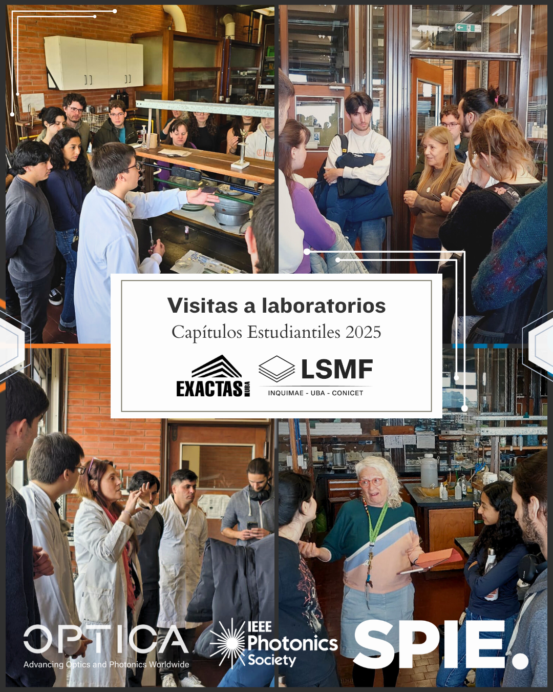 Integrantes del LSMF formaron parte de la Edición 2025 de las Visitas a Laboratorios de los Capítulos Estudiantiles UBA de OPTICA, IEEE Photonics y SPIE. Los mismos están orientados a estudiantes de física que busquen proyectos de Laboratorio 6 y 7, tesis, doctorado o simplemente estén interesadxs en conocer cómo se trabaja en laboratorios de óptica.